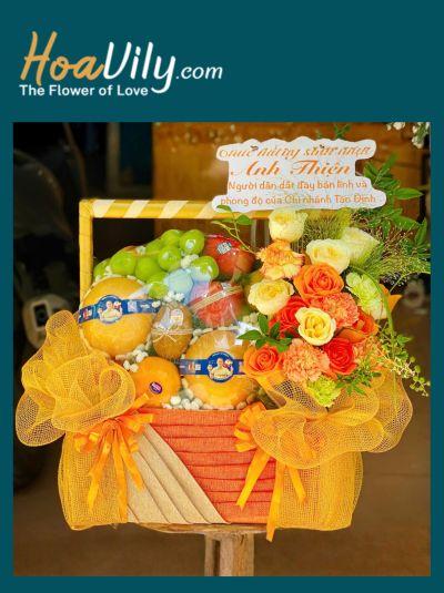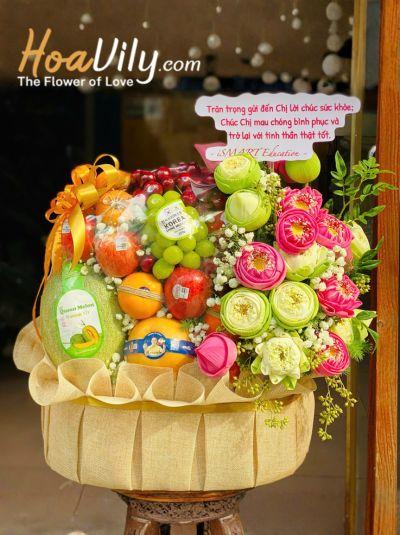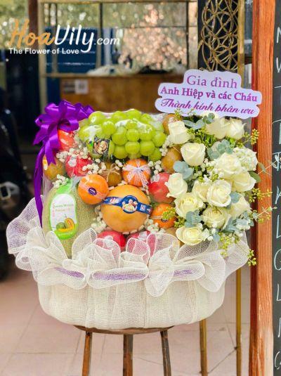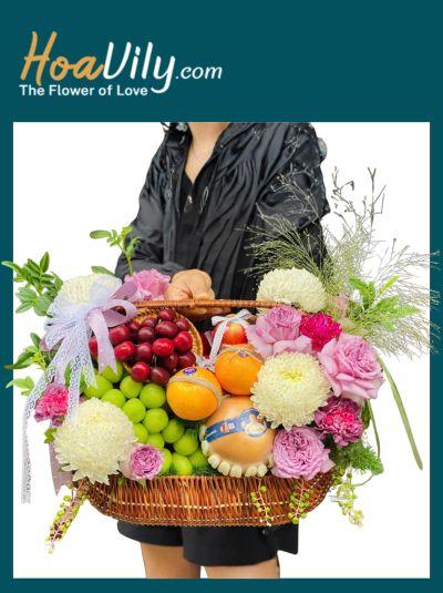 Giỏ trái cây sinh nhật "Rạng rỡ" nổi bật với thiết kế sang trọng từ hoa hồng tone cam ấm áp và nơ lụa cao cấp, tạo nên món quà tặng sinh nhật Mẹ hoặc người thân vừa tinh tế vừa ý nghĩa. Lựa chọn giỏ quà trái cây tươi sạch này không chỉ giúp bạn truyền tải trọn vẹn sự quan tâm chân thành mà còn là lời chúc sức khỏe, trường thọ gửi đến những người thương yêu.