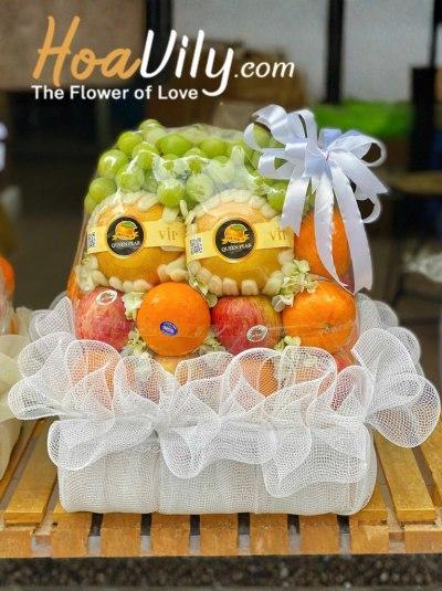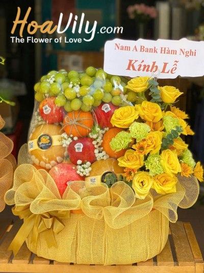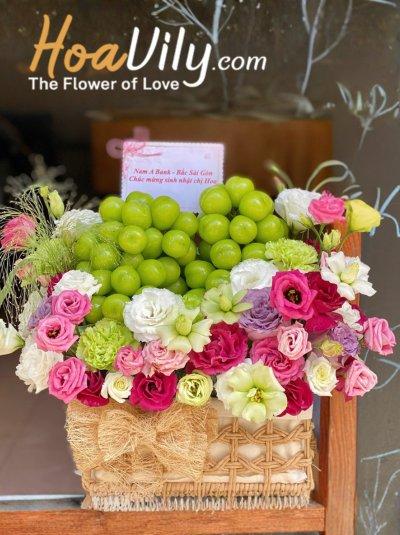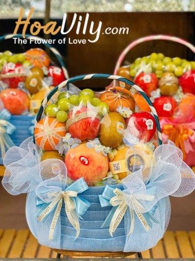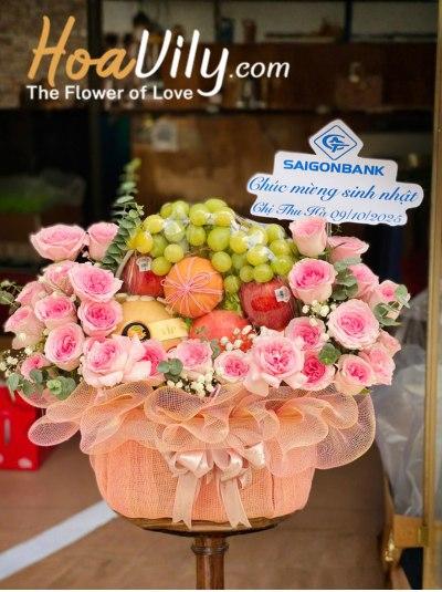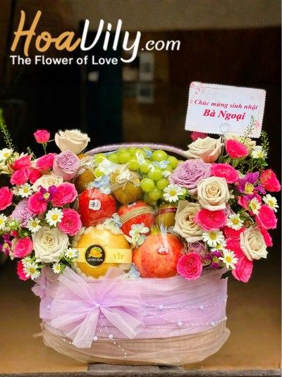 Sự hài hòa giữa trái cây tươi ngon và hoa tươi tạo nên một giỏ trái cây sinh nhật vừa tinh ý vừa sang trọng. Mẫu giỏ này rất thích hợp để biếu tặng sinh nhật, hay gửi lời cảm ơn hoặc thăm hỏi người thân, đối tác, bạn bè, đồng nghiệp,....